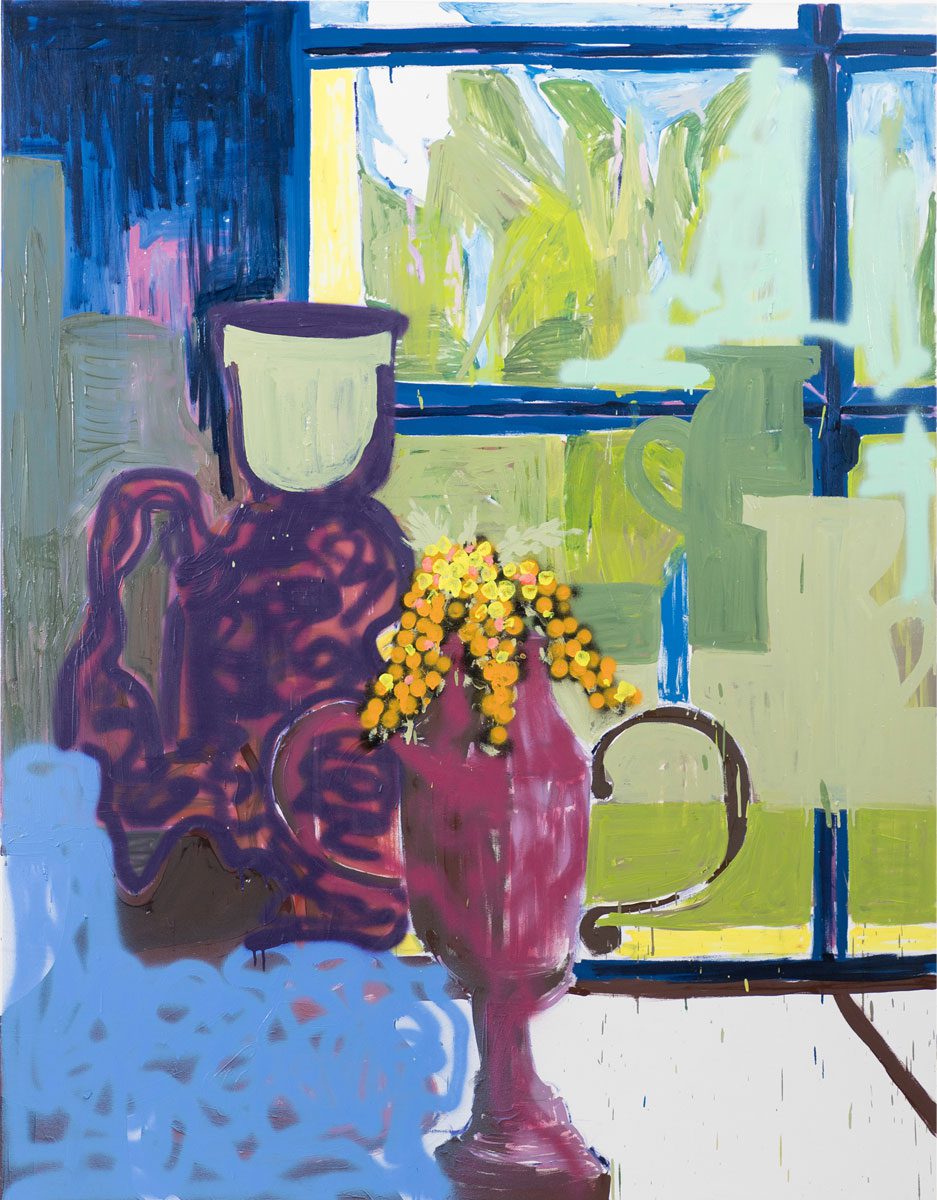 In his series of large-scale paintings, Timur Lukas depicts the impression of nature from days gone by. The artist’s own childhood memories – as the exhibition title suggests, fuelled by visits to his grandmother – are reduced to a few strong pictorial fragments: Windows, stairs, vases, trees. This subjective and therefore temporally and visually distorted recollection takes place on the canvas as the quintessence of these relics. As a result, sizes and shapes are distorted, but it is precisely this that creates the best possible remembered fiction as a clear certainty. Lukas only ever allows the viewer to guess at the category of real and false memories and their emotional connotations.