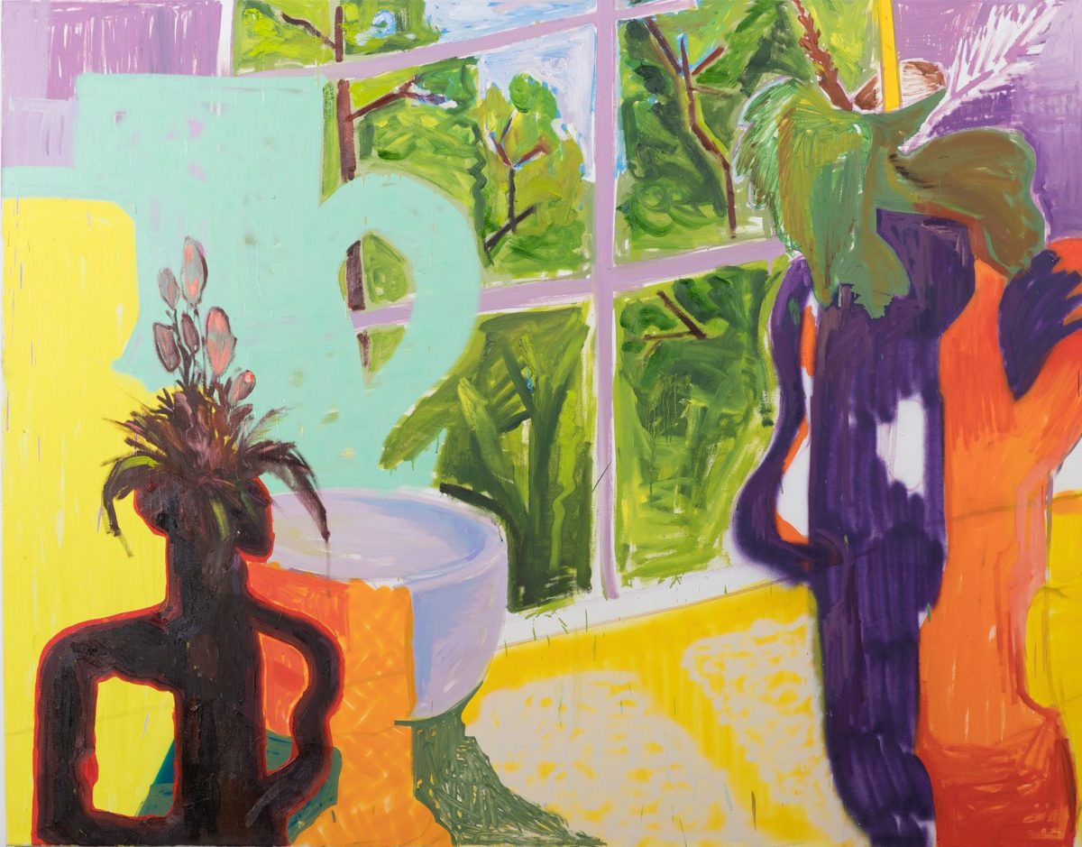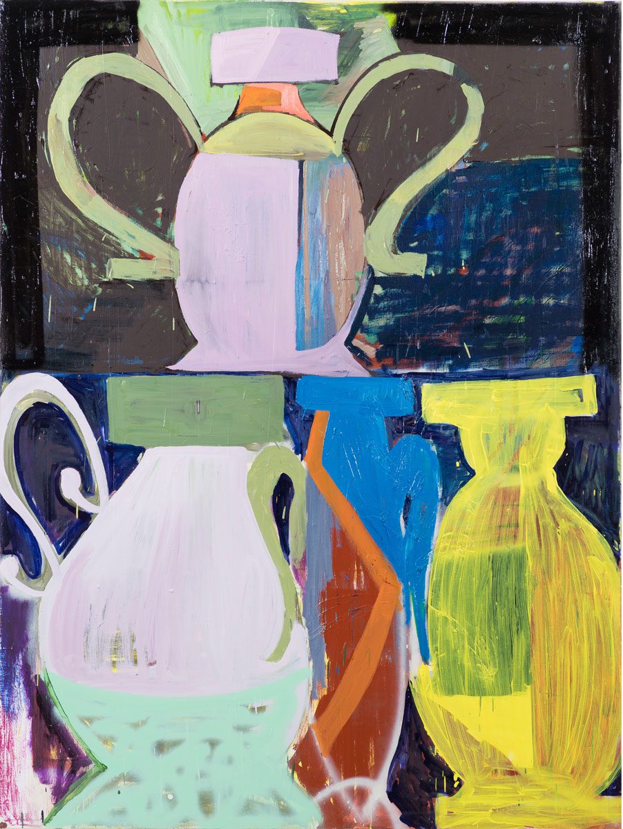 Luka’s works radiate with colourful diversity, positively charged, at times intoxicatingly exaggerated nature, brought to the canvas with loose brushstrokes in oil and spray paint and yet to be named in detail, even if not to be misunderstood as documentary: Yarrow, craspedia and poppy. As in earlier works, Timur Lukas continues to concede each colour its own surface, but the layers are staggered, the overpaintings are layered, yet the executed figuration becomes more clearly legible. A fever dream of memory.